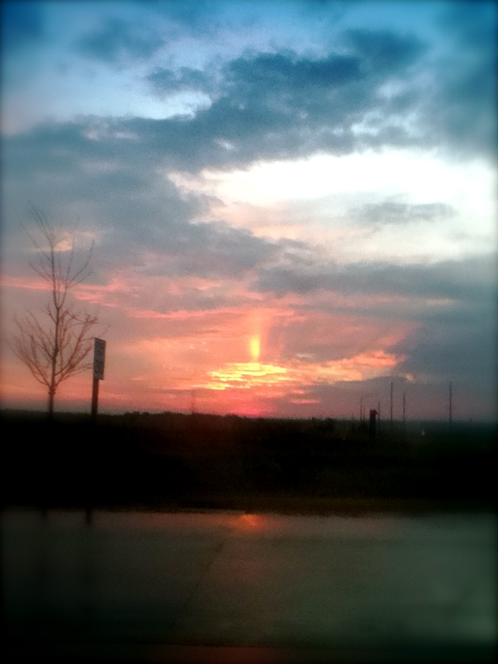 I woke up today with 20 minutes to get up and get ready for work, so not much has happened in that aspect. My life has definitely slipped into a redundant…wake up, go to work, go home, putz around, go to sleep and repeat. I mean, there really isn’t much socializing to be done at 4 in the morning. It was easier when I worked from 5:30am-3:30pm and had the afternoon to hang out with people, go hit the town or whatever, and I had Fridays and Saturdays off. Now, I sit at work and talk with the people I work for, and with, and watch the clock tick away…and away…and away…although I did get to see a beautiful sight today while leaving the Plasma Donation center…..I started going in the early mornings, and this sight is worth being up at 6am.